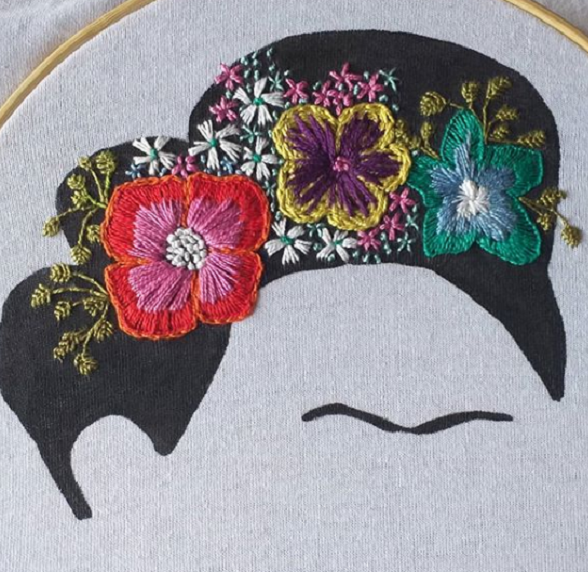Detalle de bordado de flores con hilos de algodón sobre camiseta.